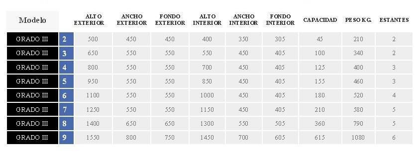 El nivel de valores asegurables Una vez que hayan cumplido con la prueba de conformidad, las cajas fuertes respetando las normas europeas reciben un número de clasificación (entre 0 y 5), que determina su pertenencia a un nivel de seguridad, de acuerdo a su valor asegurable. Es sobre esta clasificación indicativa que las compañías de seguros podrán apoyarse para determinar el valor de la garantía. Si las cajas fuertes pueden ser comercializadas sin estar sujetas a estas obligaciones, su homologación constituye una garantía de eficiencia y sólo los productos que cumplan estos requisitos pueden reclamar el nombre de "caja fuerte". Cada clase indica un valor asegurable