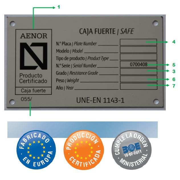 Producto certificado por AENOR, Grado IVsegún Norma Europea UNE EN 1143-1 para ver certificado haz clic aquí AENOR